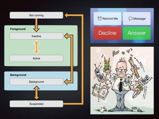 The document discusses the challenges and strategies for preparing a QA team for mobile testing, emphasizing the importance of understanding mobile-specific non-functional requirements and the complexities introduced by diverse devices, OS versions, and user behaviors. It highlights the fragmentation in the Android ecosystem and the need for thorough testing scenarios that consider multitasking interruptions, performance under various conditions, and the interaction between applications and device hardware. Additionally, it mentions the necessity of effective communication and version control to address issues that arise during testing.