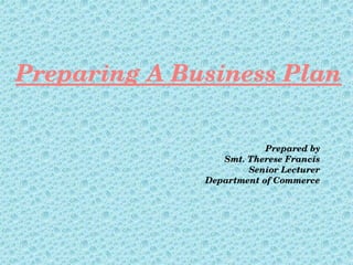 This document outlines the key components and purpose of a business plan. A business plan identifies business goals and services, and answers questions about products, target markets, and strategies for competition. The main purposes of a business plan are to maintain focus, secure financing, and provide confidence to management. A good business plan is realistic, accurate, and highlights key areas such as the marketing, financial, human resources, technical, and social aspects of the business. It includes an executive summary, company description, product details, management overview, marketing strategy, financial projections, and industry and competitive analyses.