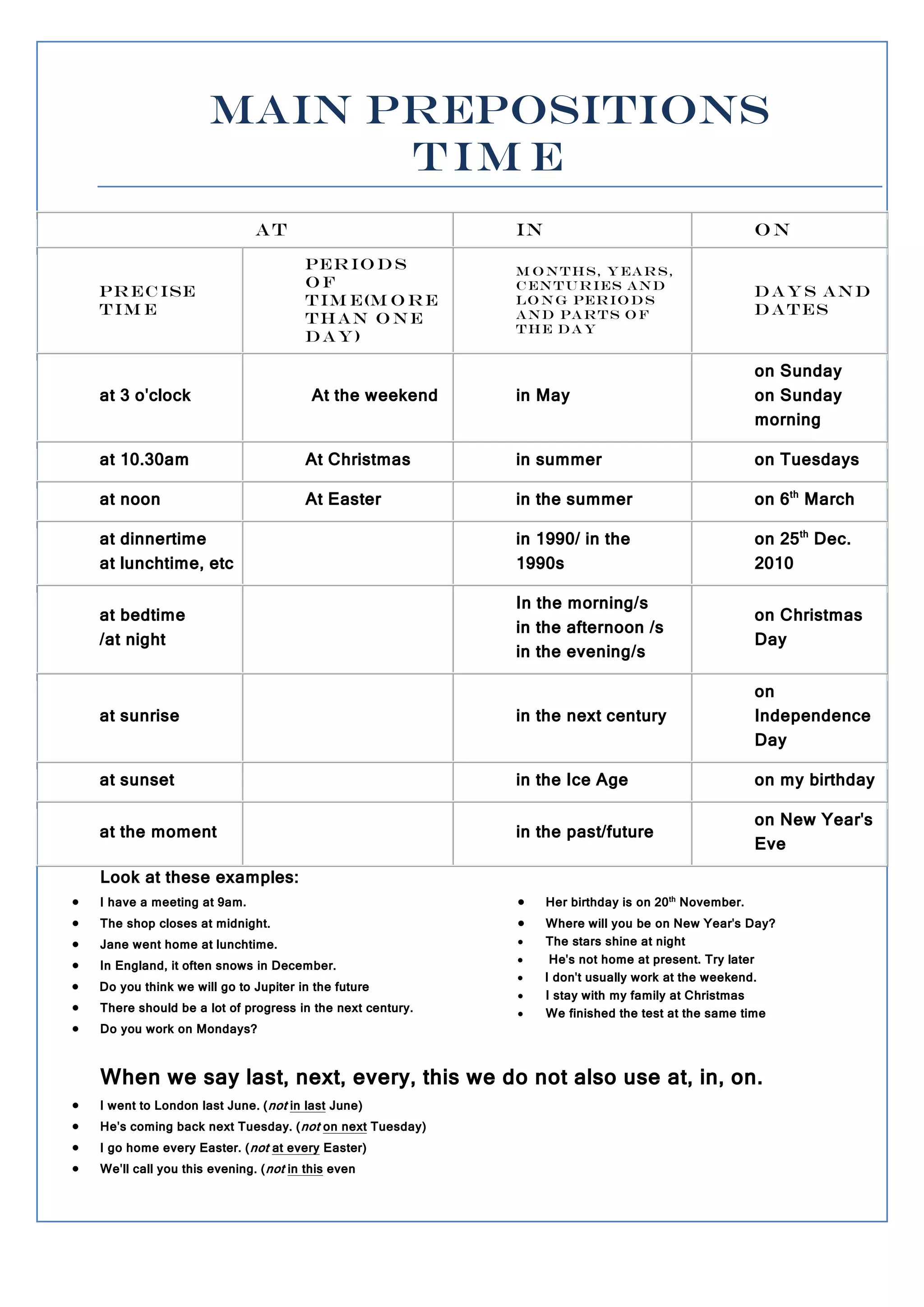 The document provides information about the proper uses of various prepositions of time, place, and method. It discusses when to use prepositions like at, in, on, by to indicate precise times, periods of time, locations, means of transportation, and methods of doing things. It provides examples for each context to illustrate the correct usage of these prepositions.