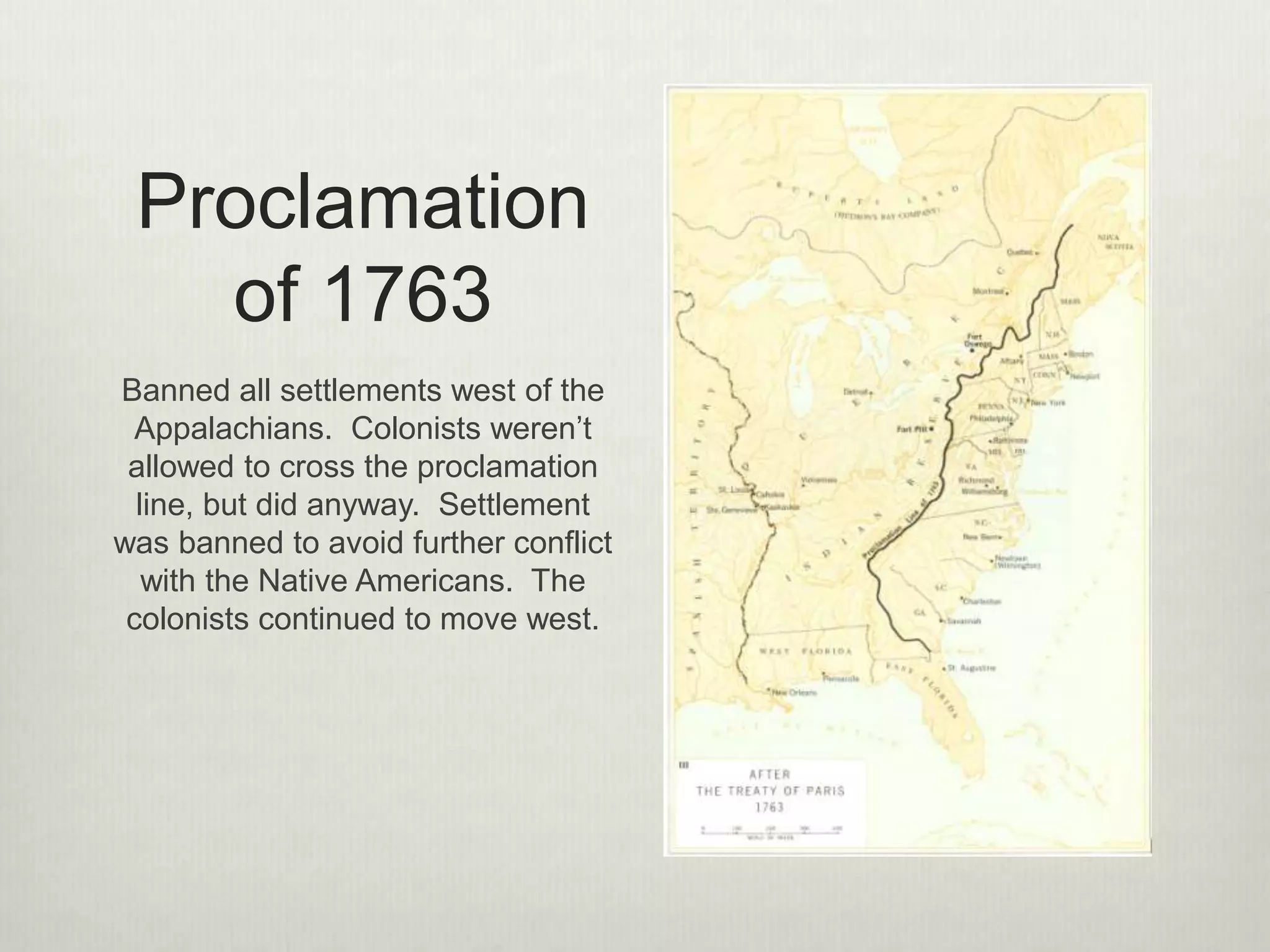 Bacon's Rebellion in 1676 was an early instance of colonial defiance of authority. The Navigation Acts and other laws enforced by the Board of Trade and writs of assistance led to growing tensions between Britain and its colonies over taxation and trade. The French and Indian War resulted in new lands for Britain but also the Proclamation of 1763, angering colonists. A series of taxation acts, along with events like the Boston Massacre and Tea Party, prompted the First and Second Continental Congresses and battles at Lexington, Concord, and Bunker Hill, moving the colonies towards open conflict and a declaration of independence.