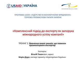 ТРЕНІНГ 2. Вивчення вимог ринків: що повинен