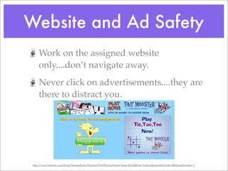 The document emphasizes internet safety and the dangers of cyberbullying, advising users to protect their personal information and communicate only with known individuals. It provides guidelines for safe online behavior, including not sharing personal details, avoiding inappropriate content, and reporting any negative experiences to a trusted adult. Additionally, it highlights the potential consequences of online actions and the importance of maintaining a respectful online presence.
