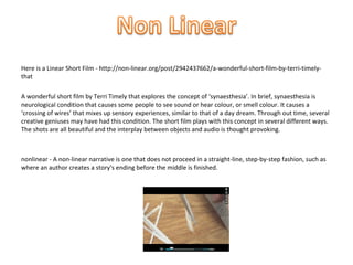 Narrative structure generally describes the framework that underlies how a narrative is presented, including the plot and setting. It provides the order and manner in which the narrative is communicated. The core components of narrative structure are the plot, or sequence of events, and the setting, or where the events occur.
