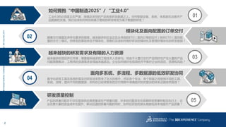 文档讨论了如何在中国制造2025和工业4.0的背景下,推动企业研发从基于图纸转向基于数据的方式。强调了在快速多变的交付需求和有限资源下,实施模块化和配置交付的重要性,以及如何通过数字化工具提高研发质量和效率。最后,分析了企业在资源调控、项目管理和产品质量控制方面所面临的挑战。