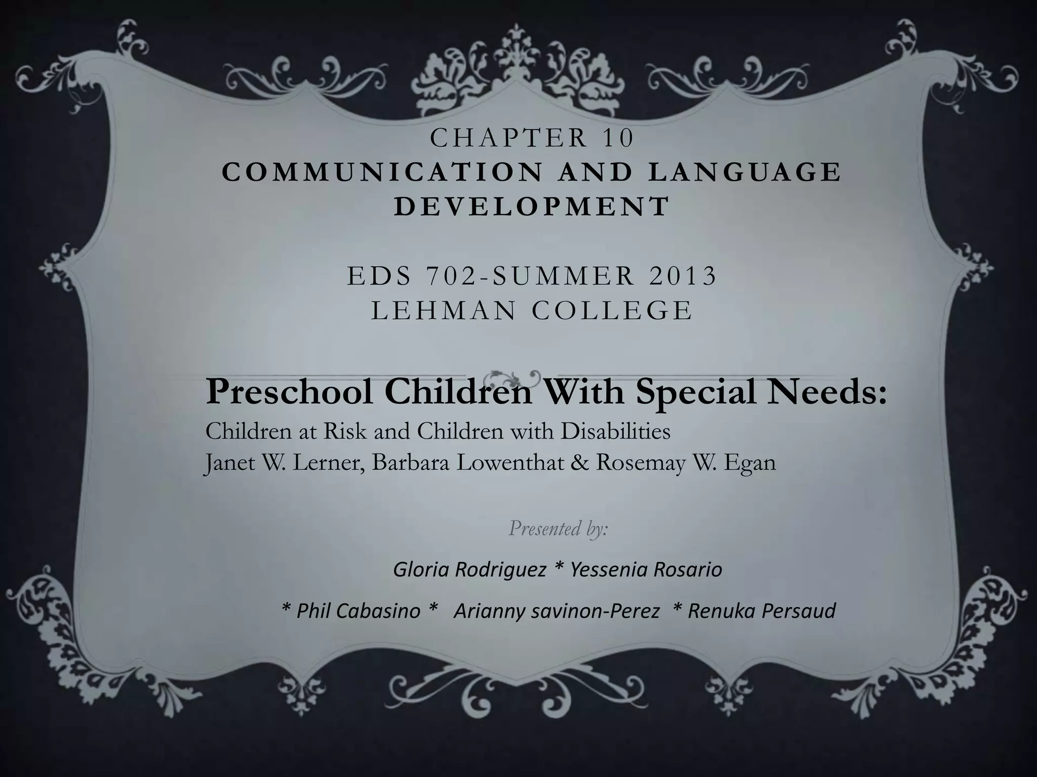 The document discusses the stages of language development in preschool children, highlighting key concepts such as communication, language, and speech. It outlines theories of language acquisition, the linguistic systems involved, and the various factors impacting language development, including cognitive delays, emotional disturbances, and auditory processing issues. Additionally, it emphasizes intervention strategies including naturalistic teaching and responsive interaction to support children with language difficulties, particularly those with special needs.