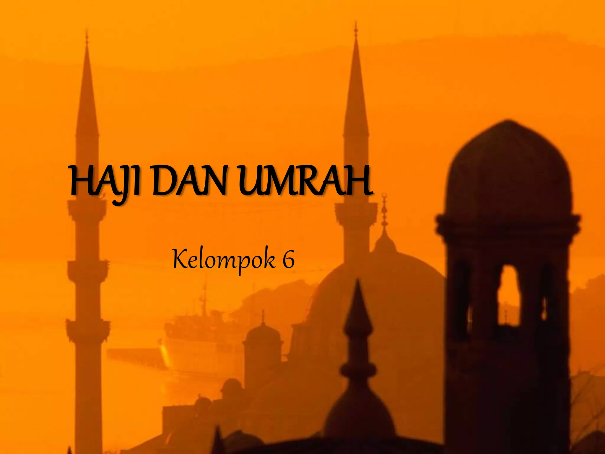Dokumen tersebut membahas tentang ibadah haji dan umrah dalam Islam. Ibadah haji merupakan salah satu rukun Islam yang wajib bagi Muslim yang mampu melaksanakannya. Terdapat beberapa jenis haji yaitu haji ifrad, tamattu', dan qiran. Sedangkan umrah adalah ibadah sunnah yang meliputi ritual tawaf dan sa'i di sekitar Ka'bah. Kedua ibadah tersebut memiliki syarat dan rukun yang har