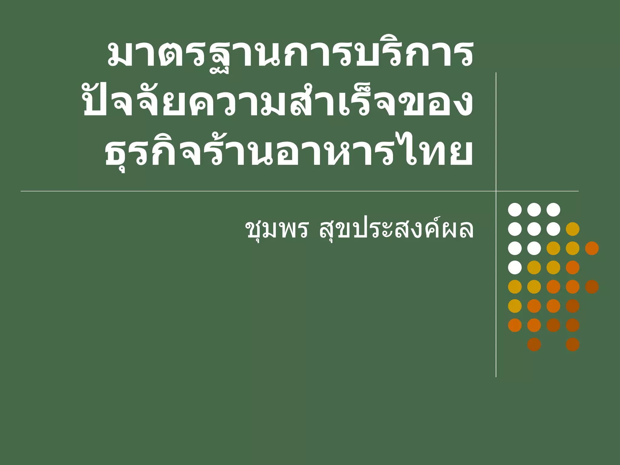 มาตรฐานการบริการปัจจับสู่ความสำเร็จของธุรกิจร้านอาหารไทPresentย