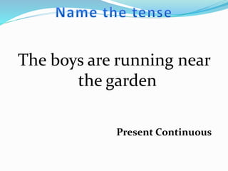 The document summarizes verb tenses and aspects in English, providing examples of sentences using the present continuous, present simple, past continuous, future simple, and present perfect tenses. It also provides two multiple choice tests on famous London landmarks and notable English figures.