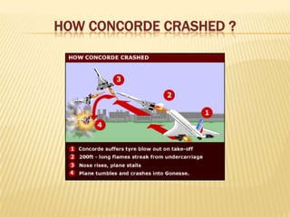 The document discusses the development and design of the supersonic Concorde aircraft. It describes how the British and French governments agreed in 1962 to jointly develop a supersonic transport. Two prototypes were built and the first flight occurred in 1969. Key design aspects included delta wings for stability at supersonic speeds, powerful jet engines, and a droopable nose for visibility during takeoff and landing. Concorde carried 100 passengers at twice the speed of sound but was retired in 2003 due to high costs and falling revenues.