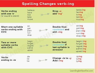 Fiilin son harfinebağlı olarak bazen -ing takısı farklı şekillerde