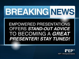 The document provides tips from news anchors, weather presenters, and reporters on becoming an effective presenter. Key advice includes maintaining eye contact, using varied tonality, dressing appropriately, and incorporating body movements and visuals. Overall, the guide emphasizes the importance of confidence, engaging content, and genuine personality in captivating an audience.