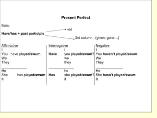 The document discusses various experiences people may have had in their lives pertaining to cinema, computers, health, and school. It provides examples of questions to ask about those experiences, such as whether someone has ever met a movie star, had a computer virus, spent a night in the hospital, or cheated on an exam.