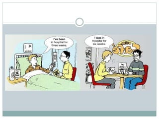 The document discusses the present perfect tense in English. It provides the form of the present perfect simple as subject + have/has + past participle. It contrasts the present perfect tense with the simple past tense. The present perfect is used for actions that began in the past and continue in the present, or actions that occurred at an unspecified time in the past. The simple past is used for actions that are finished and no longer connected to the present, or actions that occurred at a specific time in the past. The document also lists common time expressions used with the present perfect and simple past tenses.
