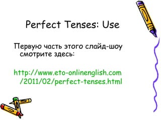 Документ обсуждает основные ошибки русскоговорящих в использовании времён present perfect и present perfect continuous в английском языке. Он включает примеры предложений с ошибками, объяснения правильных форм и их применения в контексте, что помогает улучшить навыки речи на более продвинутом уровне. Также представлена информация об авторе, Елене Васильевне Мутоновой, преподавателе английского языка и организаторе онлайн-платформы для обучения.