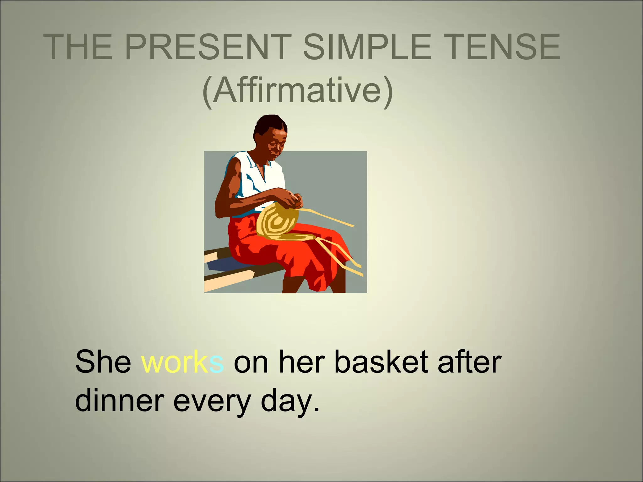 The document discusses the present simple tense in English. It covers the affirmative, interrogative, and negative forms for the third person singular. The present simple tense is used to describe general truths, habitual actions often accompanied by frequency adverbs like "always" or "never", and opinions/feelings. Some examples of each use are given.