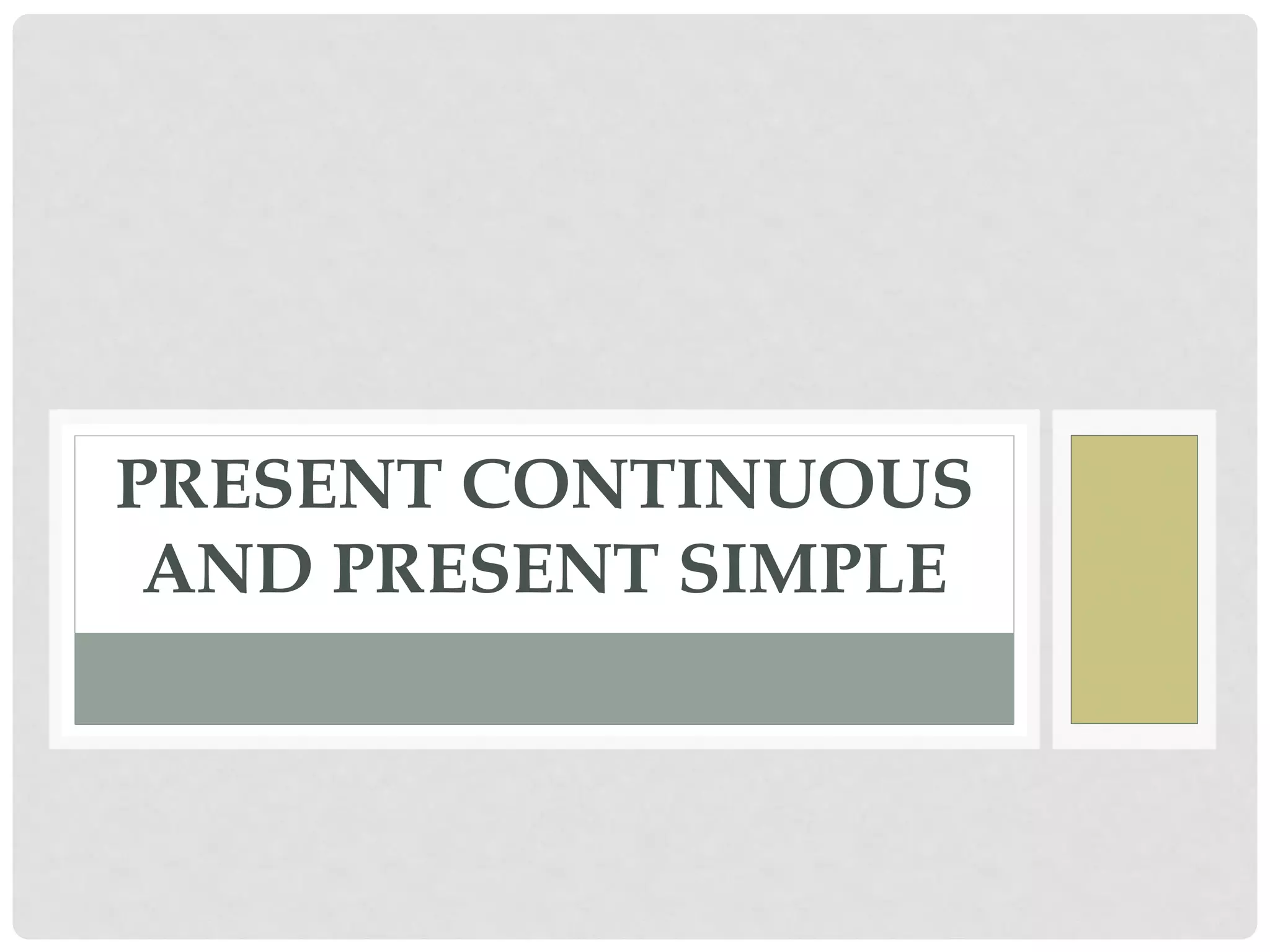 The document discusses the present continuous and present simple tenses in English. It provides examples of when each tense is used, such as using the present continuous for temporary actions happening now and the present simple for habitual or repeated actions. It also lists time markers used with each tense and notes that stative verbs like "know" or "believe" are generally not used in the present continuous as they describe a state rather than an action.