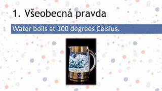 The document discusses the present simple tense and its uses for beginners. It provides three examples: stating a general truth that water boils at 100 degrees Celsius, describing an ongoing situation that the speaker works as an architect, and noting a repeated action that the speaker wakes up at six o'clock every Monday.