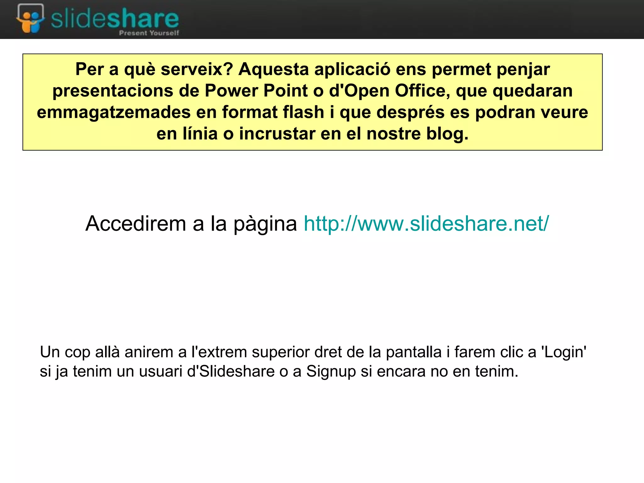 si ja tenim un usuari d'Slideshare o a Signup si encara no en tenim.