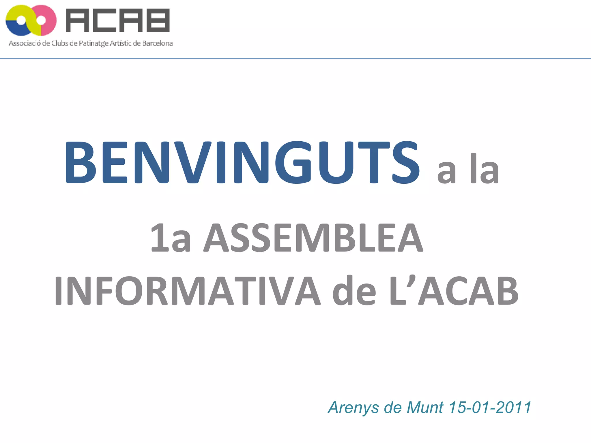 BENVINGUTS a la 1a ASSEMBLEA INFORMATIVA de L’ACAB Arenys de Munt 15-01-2011