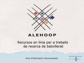 Alehoop és un recull selectiu de recursos en línia que vol ser una eina d'ajuda per a treballs de recerca bàsica. Ofereix una mostra de recursos informatius útils per a estudiants de batxillerat, de cicles formatius i dels primers anys de la Universitat.