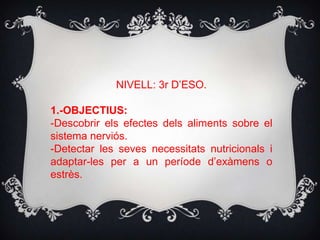 Presentació: alimentació i cervell 1. 2. 3. 2.-CONTINGUTS: