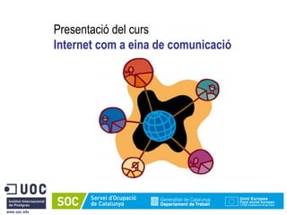 Serveis de comunicacióASÍNCRONA Curs: Internet com a eina de comunicació Són aquells programes i aplicacions que ens permeten establir conversa amb d’altres, sense la coincidència en el temps dels interlocutors . Nosaltres redactem i enviem el nostre missatge i, el o els destinataris, el llegiran quan es connectin i, aleshores, ens podran respondre .