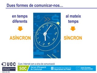 Dues formes decomunicar-nos… en temps diferents al mateix temps ASÍNCRON SÍNCRON Curs: Internet com a eina de comunicació