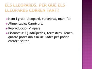 Nom i grup: Lleopard, vertebrat, mamífer.