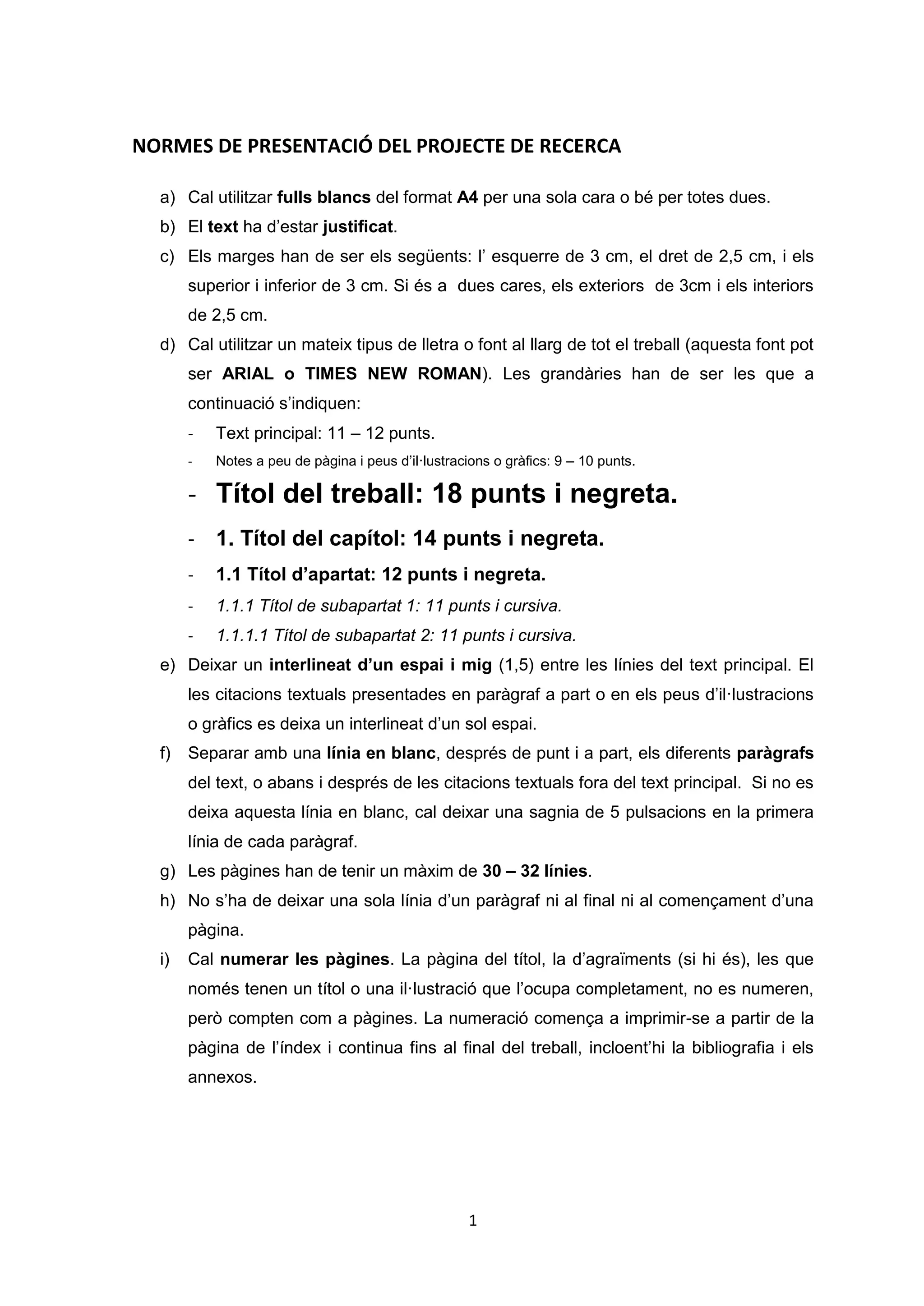NORMES DE PRESENTACIÓDEL PROJECTE DE RECERCA