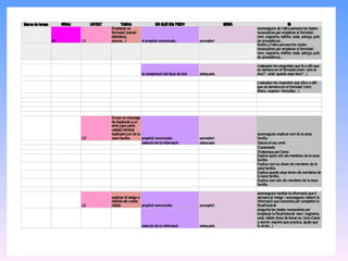 NIVELL ELEMENTAL Elemental1 Elemental 2 Elemental 3 relat d'un accident domèstic intenvenció oral en una reunió de veïns exposició plantejant una proposta d'activitats petit anunci per vendre un cotxe descripció d'una persona entrevista laboral per canviar de feina exposició que reculli les conclusions que s'han debatut Explicar una anècdota d'un viatge carta al director plantejant una reclamació descripció d'un habitatge un fullet instructiu sobre emergències exposició oral per convèncer que et lloguin un local sinopsi d'un pel·lícula horòscop exposició oral per presentar un itinerari de visites