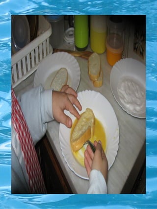 La recepta de les torrijas inclou batre un ou i submergir llesques de pa en llet abans de passar-les per l'ou. Es freguen en oli calent fins que estiguin daurades, i s'afegeix sucre al final. El plat es serveix un cop estan llestes.