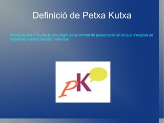 Kutxa Pecha Kucha o Pecha Kucha Night és un format de presentació en el qual s'exposa un treball de manera senzilla i informal.