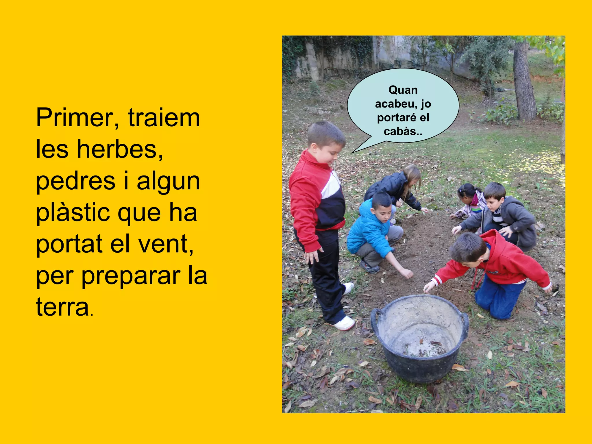 Tirem un parellde llavors de fava a cada forat.