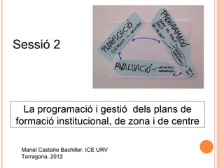 La programació igestió dels plans de formació institucional, de zona i de centre Manel Castaño Bachiller. ICE URV Tarragona. 2012 Sessió 2