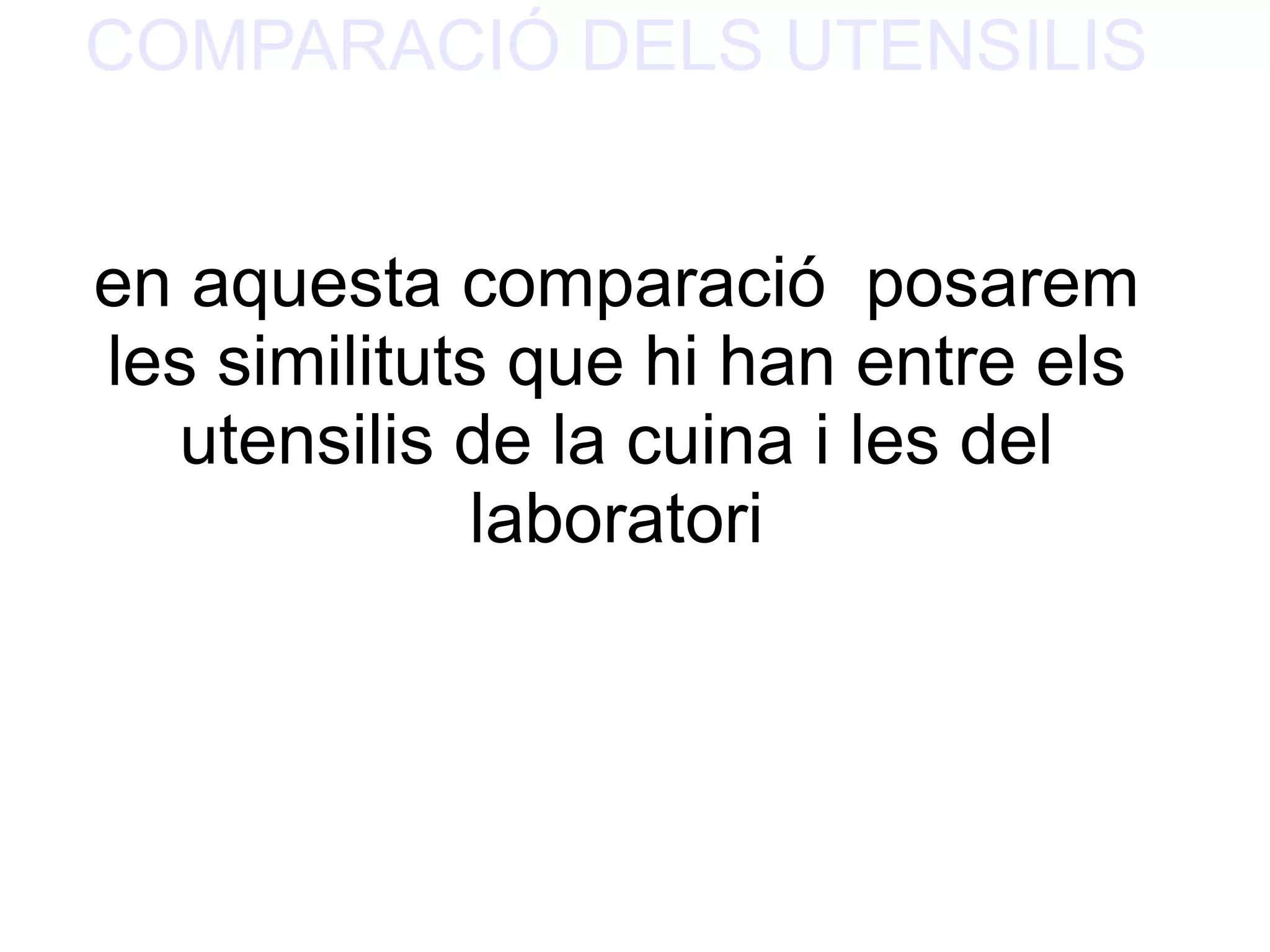 COMPARACIÓ DELS UTENSILISen aquesta comparació posarem les similituts que hi han entre els utensilis de la cuina i les del laboratori - 2.