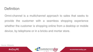 El documento discute los desafíos de la omnicanalidad en el comercio minorista y el e-commerce, definiendo la omnicanalidad como un enfoque multicanal que busca ofrecer una experiencia de compra sin interrupciones. Se destacan la importancia de integrar lo físico con lo digital, centrarse en el cliente y la relevancia de los datos y la transformación digital. Además, se menciona el papel de los consumidores hiperconectados y la necesidad de atender a los millennials en el proceso.