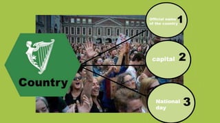 Ireland's official name is Ireland. Its capital and largest city is Dublin, which hosts many tourists annually. Some of Ireland's most visited places are Giant's Causeway, the Carrick-a-Rede suspension bridge, and sites in Dublin. Ireland has a parliamentary democracy and uses the euro as currency.