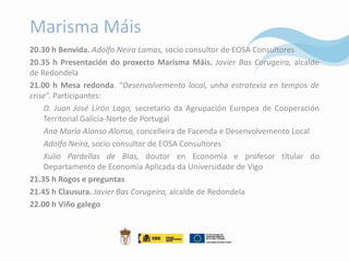 20.35 h Presentación do proxecto Marisma Máis. Javier Bas Corugeira, alcalde