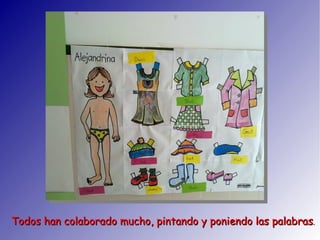 Children 2nd level labelling a poster about the clothes.