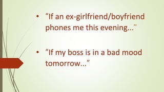 The document discusses potential phone calls from an ex-girlfriend/boyfriend and a boss being in a bad mood the next day. It mentions uncertainty around future events and interactions with others mentioned in two brief bullet points without providing additional context or details.