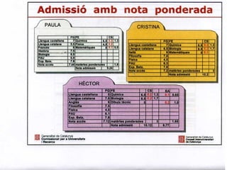 Ponderacions per al'accés a la universitat: 2010 i 2011 http://www.gencat.cat/diue/doc/doc_63436074_1.pdf