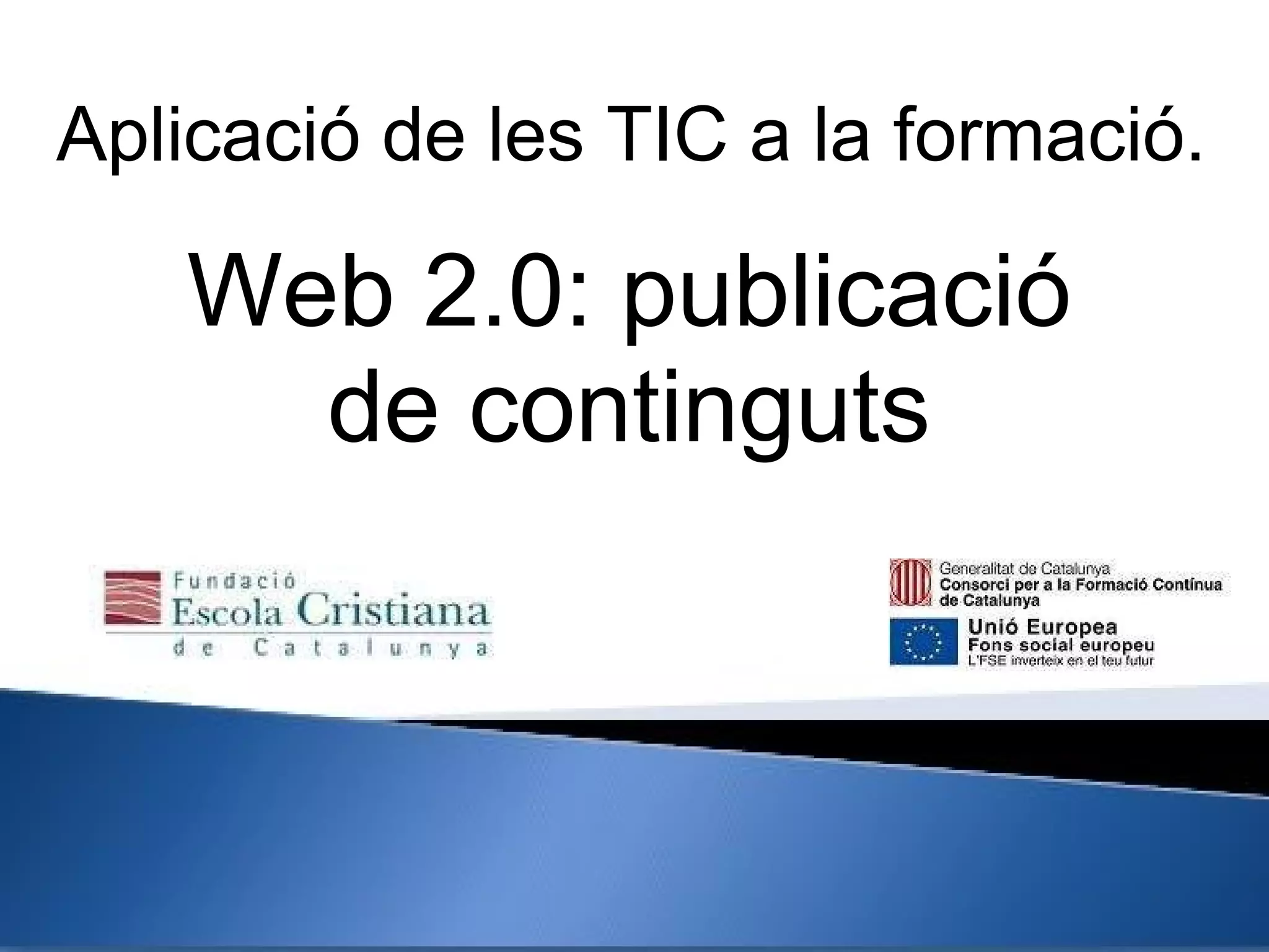 Aplicació de lesTIC a la formació. Web 2.0: publicació de continguts ara et toca a tu