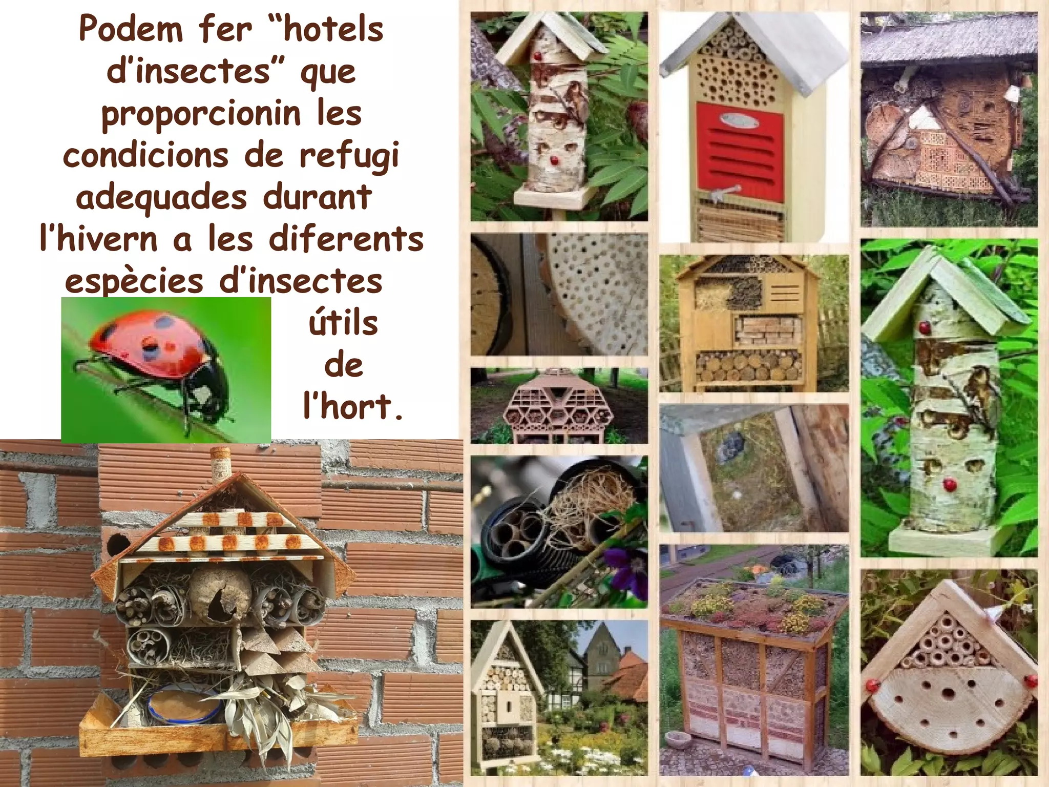 que proporcionin les condicions de refugi adequades durant l’hivern a les diferents espècies d’insectes útils de l’hort.