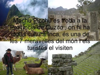 troba a la Província de Cuzco , on hi ha molta cultura Inca, és una de les 7 meravelles del món i els turistes el visiten