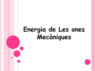Hi ha ones,com el so, que necessiten un medi material per propagar-se, com pot ser l’aire, l’aigua, o el ferro. Aquestes ones s’anomenen mecàniques.