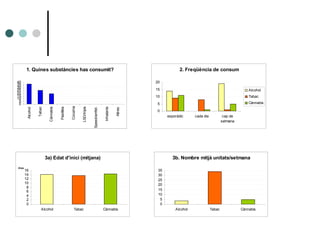 Assessorament de centreFormació específica de prevenció drogodependències. Treball en dos àmbits: El treball des de les diferents àrees Enquesta per fer un seguiment del consum de l’alumnat al llarg de l’escolarització a l’IES