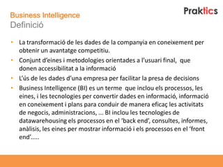 • Business Intelligence (BI) es un terme que inclou els processos, les