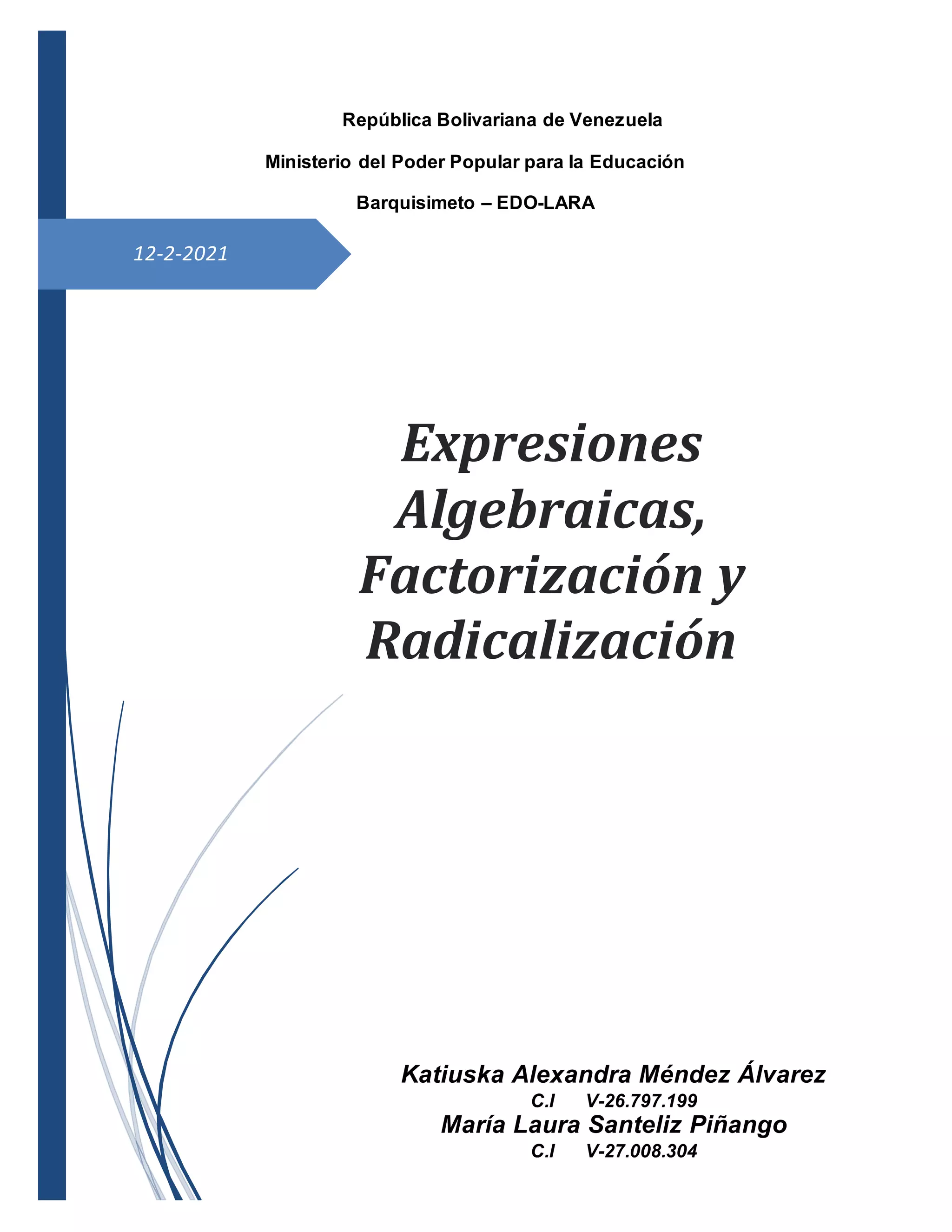 The document discusses the importance of algebra in mathematics, emphasizing the understanding and practical application of algebraic expressions, factoring, and operations such as addition, subtraction, multiplication, and division. It includes definitions of key terms, examples, and basic exercises to enhance comprehension. The content serves as an educational resource designed to foster both short-term and long-term knowledge in algebra.