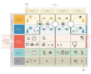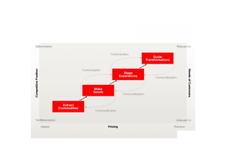 This document discusses sense-driven innovation and designing experiences. It touches on topics like mapping experiences, multiple realities, communication of realities, consumption of tangibles and intangibles, production and consumption occurring simultaneously, defects in manufacturing versus errors in behavior, and work as theater with each company being a stage. The document emphasizes that in an experience economy, the narrative or story is the interface.