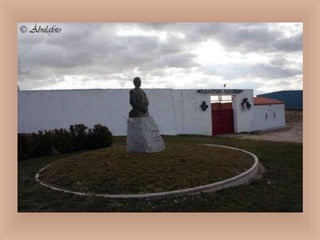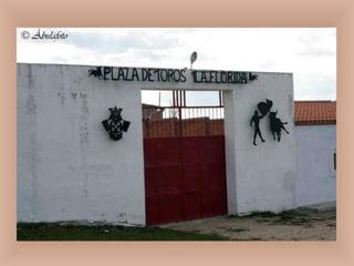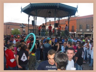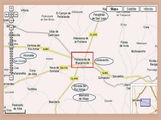 The document provides information about Peñaranda de Bracamonte, a town in Spain. It discusses the town's history, including an important explosion called "El Polvorín" and the Carmelite Convent. It also describes prominent locations like the Church of San Miguel Arcángel, the Plaza de España, and the bullfighting ring "La Florida". Additionally, it discusses the town's transportation connections, famous cuisine like suckling pig, and cultural celebrations.
